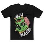 Featuring a vivid green skull with its mind unleashed. While an aura of “magic” radiates from the head.