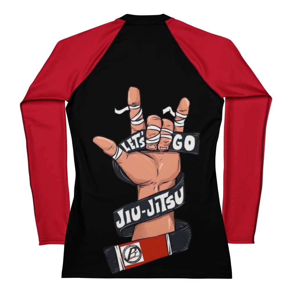 Featuring red sleeves and a clean front logo, this piece keeps things minimal from the front and expressive from the back. The taped hand graphic paired with “Let’s Go Jiu-Jitsu” brings just the right amount of attitude without overcomplicating the look.
