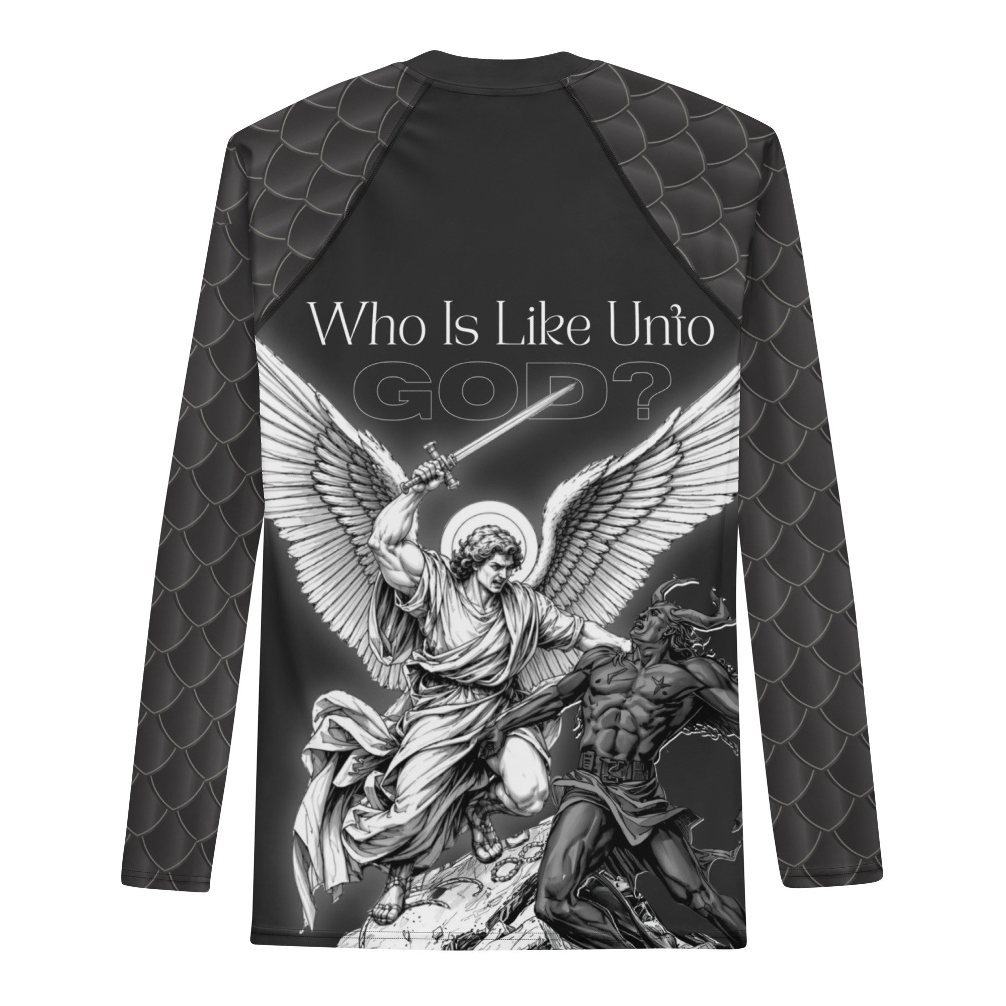 A striking graphic capturing the moment Saint Michael casts Satan and the fallen angels from Heaven, a symbol of strength, defiance, and divine authority. The battle cry “Who is like unto God” is not just spoken, but declared in victory.