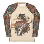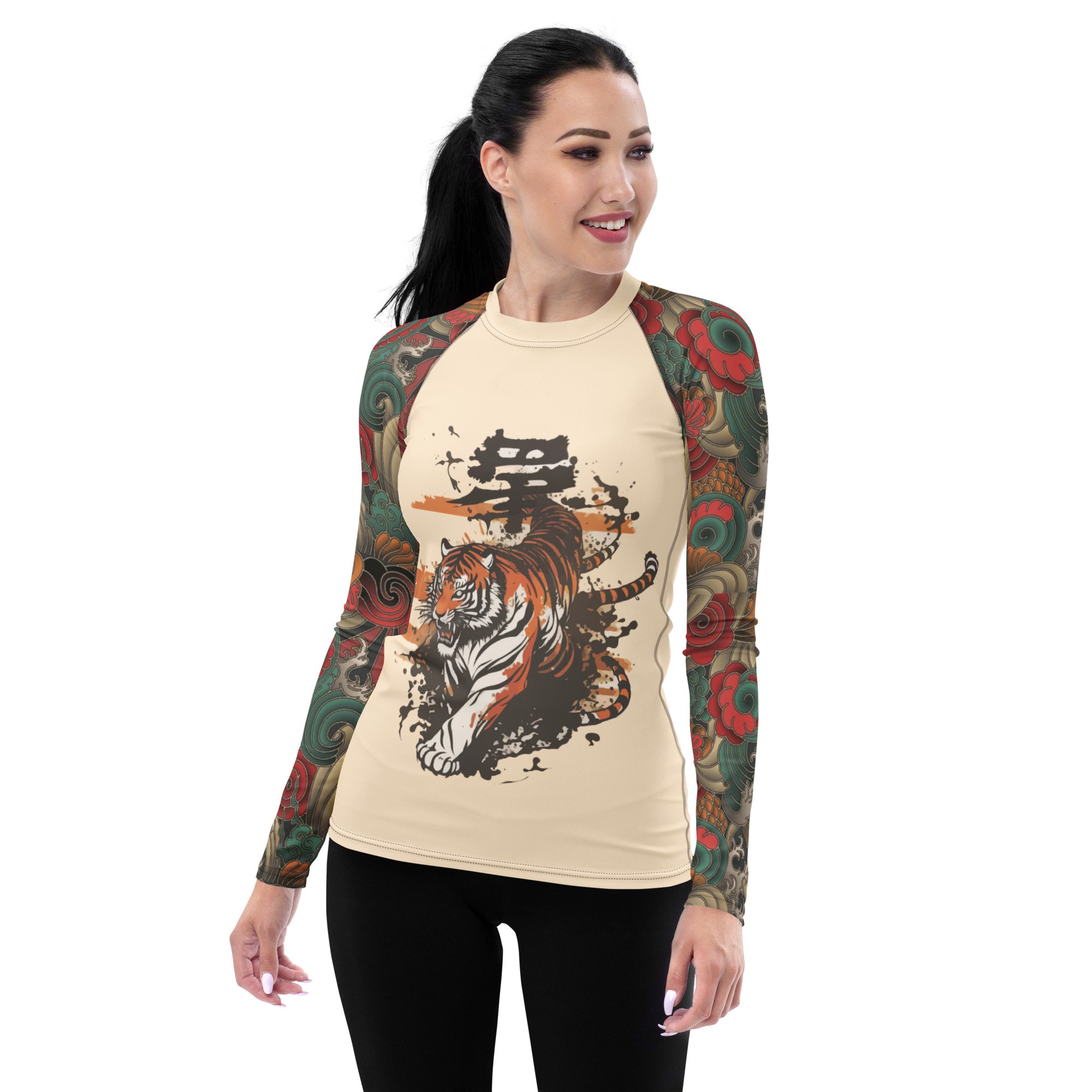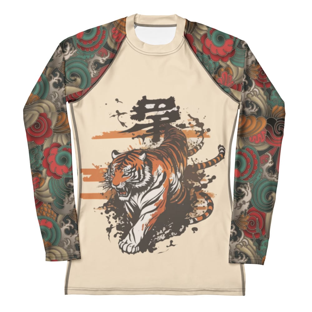 Soft nude base with Japanese-style tiger artwork and flowing swirls that move with you.