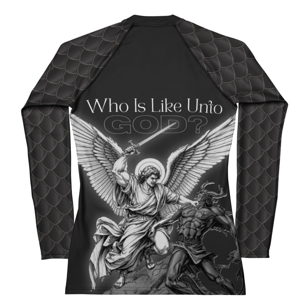 A striking graphic capturing the moment Saint Michael casts Satan and the fallen angels from Heaven, a symbol of strength, defiance, and divine authority. The battle cry “Who is like unto God” is not just spoken, but declared in victory.